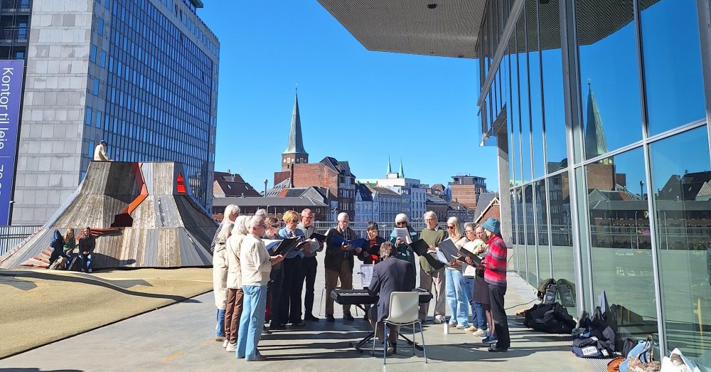 Koret synger hver tirsdag aften kl. 19.00 - 21.00 i Åby Bibliotek, Ludvig Feilbergs Vej 7, 8230 Aarhus fra september til maj.